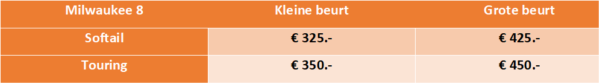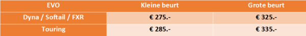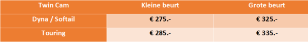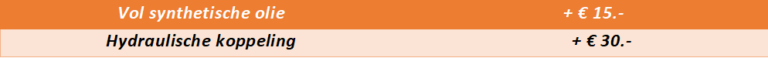 Heeft u liever vol synthetische olie in uw motor ( standaard in CVO’s) of is uw motor voorzien van een (niet originele) hydraulische koppeling dan moet u rekening houden met de volgende toeslagen.